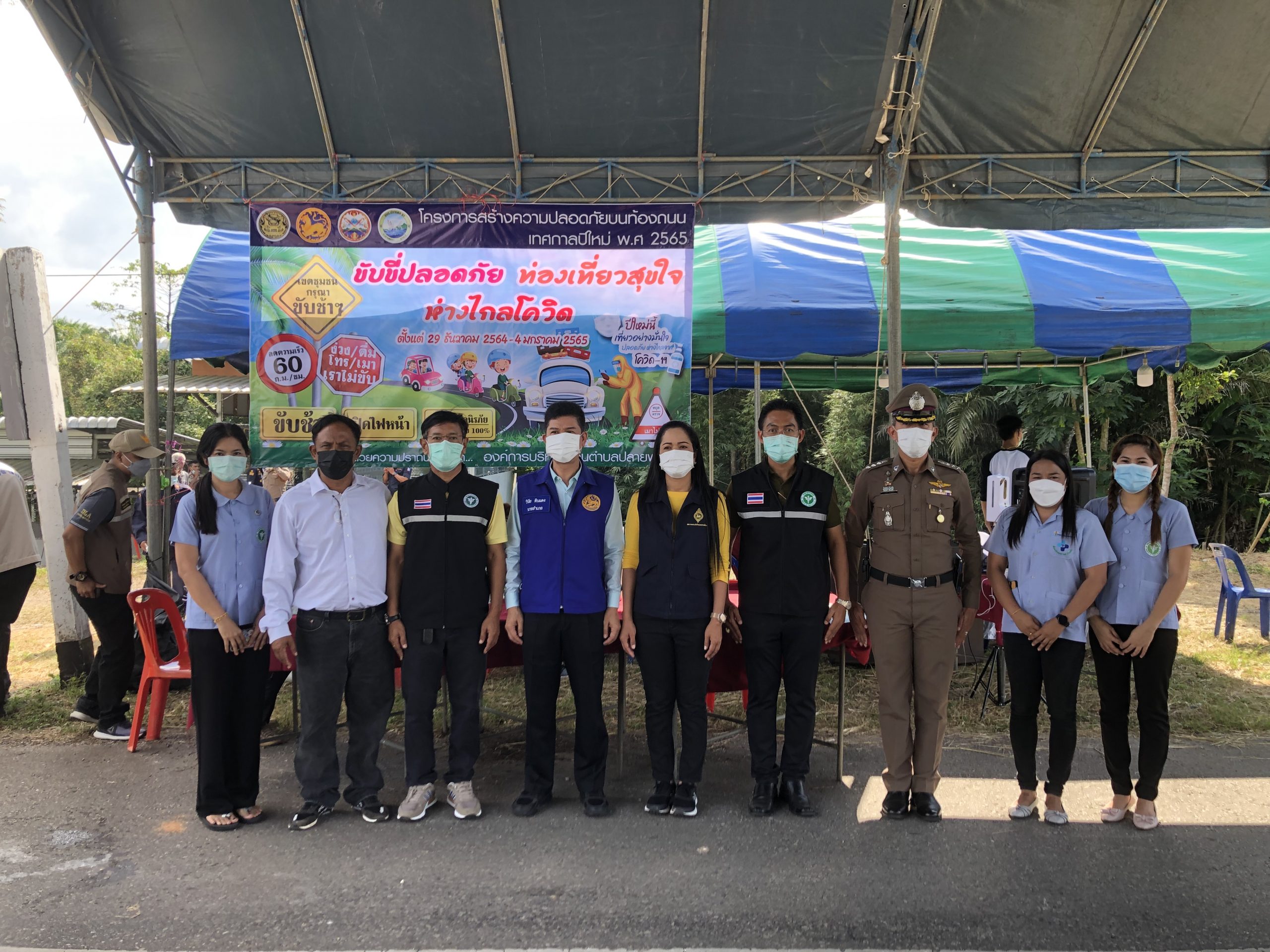 วันที่ 29 ธันวาคม 2564 เวลา 10.00 น. นายชิงชัย บัวทอง ผู้ช่วยสาธารณสุขอำเภอปลายพระยา รับมอบหมายจากสาธารณสุขอำเภอปลายพระยา นำเจ้าหน้าที่สาธารณสุขเข้าร่วมกิจกรรมในพิธีเปิดโครงการสร้างความปลอดภัยบนท้องถนน เทศกาลปีใหม่ พ.ศ.2565 อำเภอปลายพระยา ณ จุดตรวจหลัก บริเวณถนนเซาร์เทิร์นซีบอร์ด สุราษฎร์ธานี – กระบี่ (ขาเข้า) กม.ที่ 25 หมู่ที่ 8 ตำบลปลายพระยา อำเภอปลายพระยา จังหวัดกระบี่ โดยมีนายวินัย ดินแดง นายอำเภอปลายพระยา เป็นประธานในพิธีเปิดโครงการและกล่าวให้โอวาทแก่เจ้าหน้าที่ผู้ปฏิบัติงาน ผู้เข้าร่วมกิจกรรมประกอบด้วย เจ้าหน้าที่ฝ่ายปกครอง เจ้าหน้าที่ตำรวจ เจ้าหน้าที่สาธารณสุข เจ้าหน้าที่องค์กรปกครองส่วนท้องถิ่น อาสาสมัครสาธารณสุขประจำหมู่บ้าน และจิตอาสาพระราชทาน รวมจำนวนทั้งสิ้น 56 คน