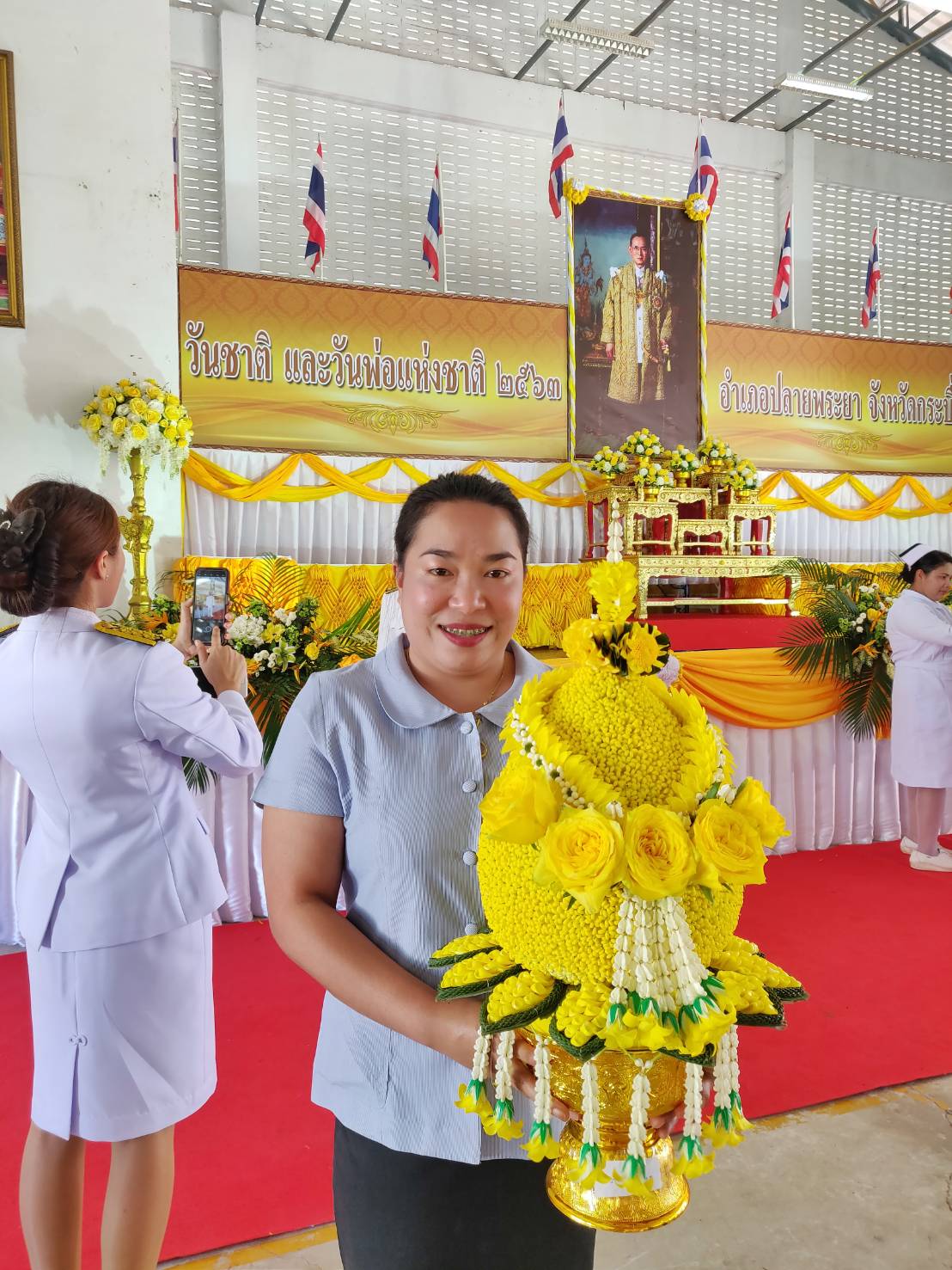 08.30 น. พิธีถวายพานพุ่มและถวายบังคม ณ หอประชุมเฉลิมพระเกียรติอำเภอปลายพระยา