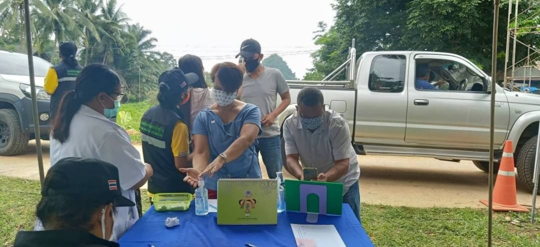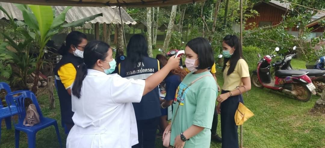 ตรวจวัดอุณหภูมิและคัดกรองเบื้องต้นโรค Covid-19 ณ สถานที่จัดงานประกวดทุเรียนทะเลหอย “ของดีปลายพระยา” ครั้งที่ 2 ศาลาประชาคมหมู่ที่ 10 ตำบลปลายพระยา